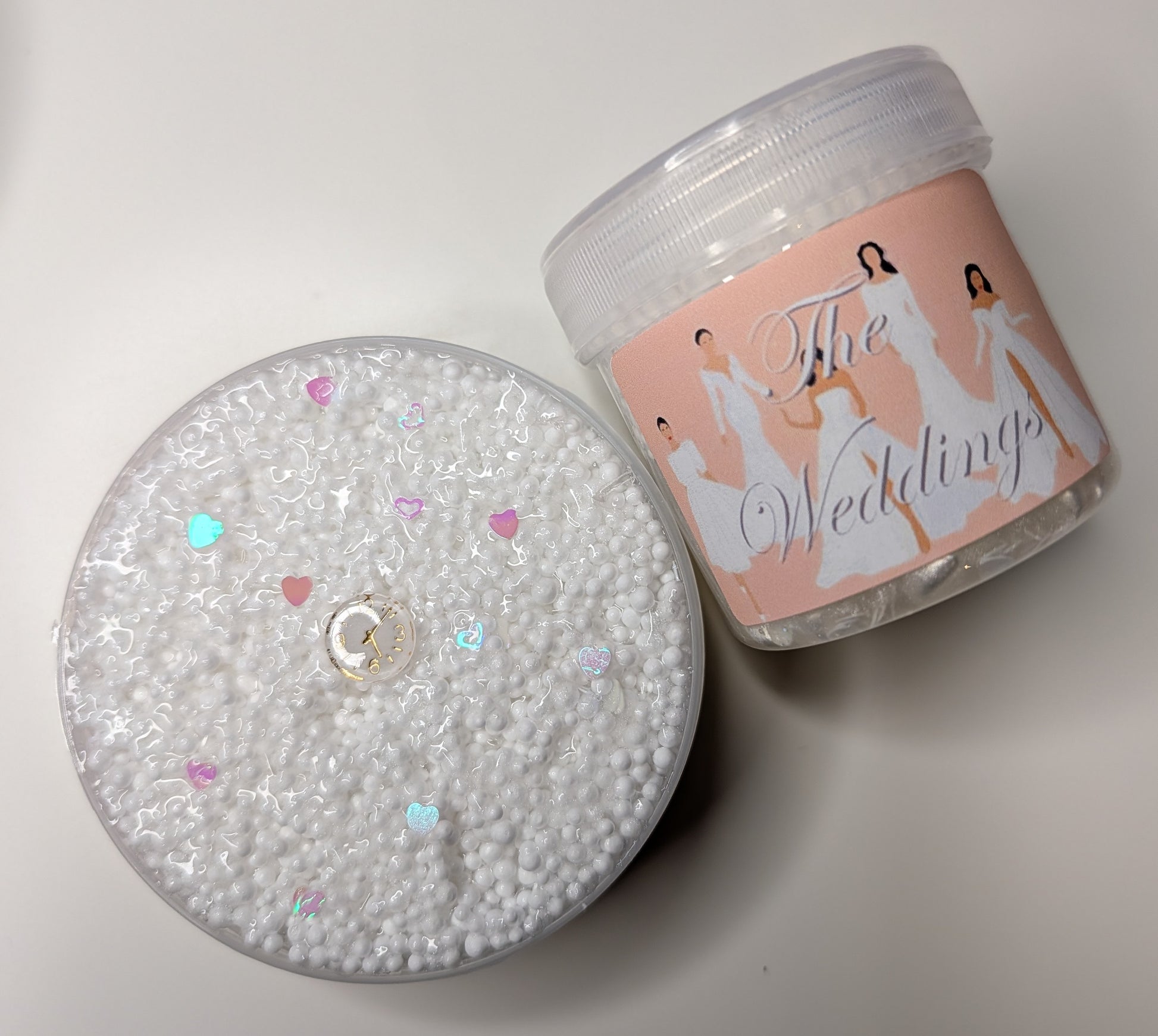 Texture: Clear white pearlescent Microfloam with beads and sequins
